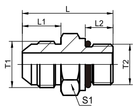 Macho métrico 74° cónico/SAE Jefe de junta tórica Serie L ISO 11926-3