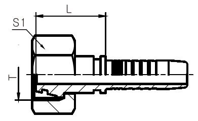 | THREAD T | Nominal inner diameter DN | Dash number | TUBE O.D | L | H | S1 | |