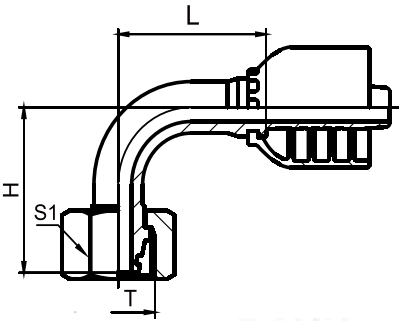 | THREAD T | Nominal Inner Diameter DN | Dash Number | TUBE O.E. | L | H | S1 | |