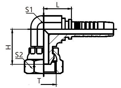 | THREAD T | Nominal Inner Diameter DN | Designation DASH | L | H | S1 | S2 | |