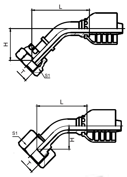 | THREAD T | Nominal Inner Diameter DN | Dash Number | L | H | S1 | |