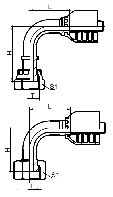 | THREAD T | Nominal Inner Diameter DN | Dash Number | L | H | S1 | |