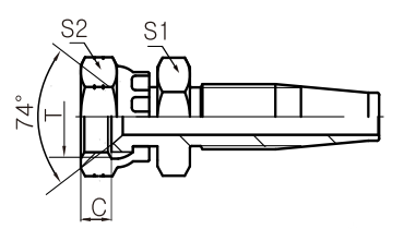 Rosca hembra americana JIC 74° Superficie cónica interna