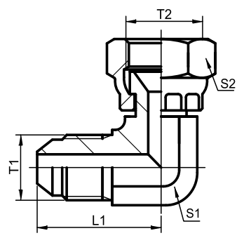 90° macho métrico 74° cónico/hembra métrica 74° asiento