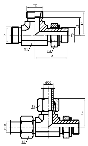 | T1/T2 | T3 | D1 | D2 | L1 | L2 | L3 | L4 | S1 | S2/S3 | S4 | g/pc | bar) | ||