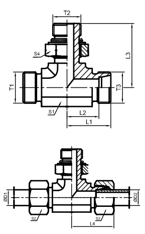 | T1/T3 | T2 | D1 | D2 | L1 | L2 | L3 | L4 | S1 | S2、S3 | S4 | g/pc | (bar) | ||