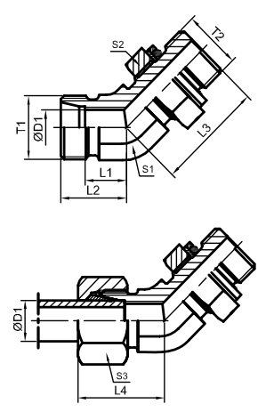 ISO 6149 45° Codo Extremo de perno ajustable macho