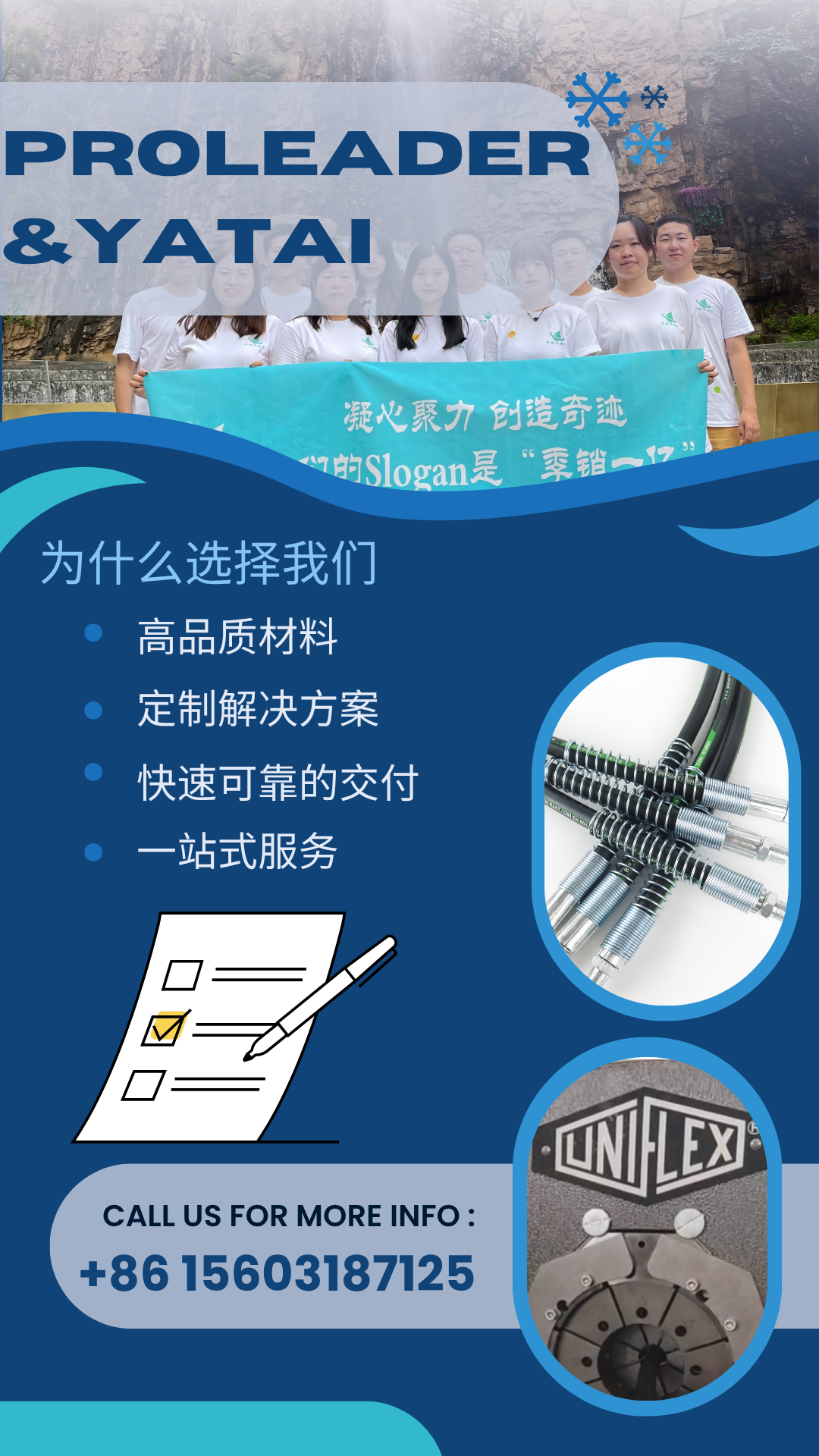 Desde su creación en 2001, Proleader & YATAI Hose siempre se ha centrado en la producción y fabricación de mangueras, conectores de fluidos y conjuntos de mangueras, promoviendo el desarrollo de la industria con la innovación tecnológica, y se compromete a proporcionar a los clientes globales soluciones de transporte de fluidos eficientes y seguros.