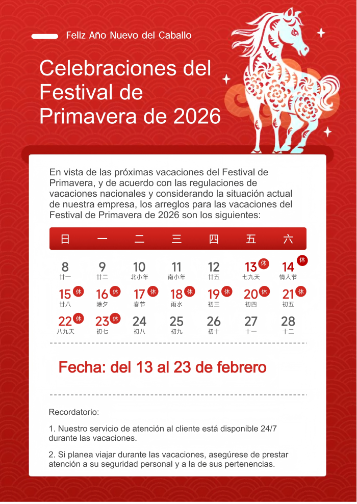 Calendario de vacaciones del Festival de Primavera de 2026: del 13 al 23 de febrero
