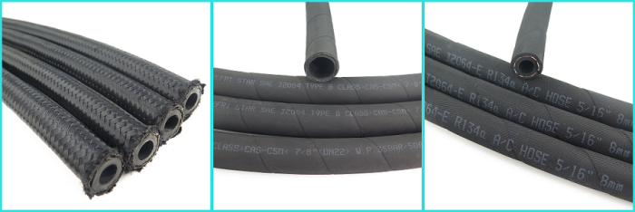 ① Manguera de aire acondicionado SAE J2064 TIPO B/C/E: Contiene adhesivos de alto rendimiento como CIIR/CSM/EPDM y una fórmula de película patentada. Cumple con las normas internacionales y ha superado pruebas de terceros, ofreciendo una excelente resistencia a la presión y a la temperatura, así como flexibilidad, lo que la hace apta para diversos modelos de vehículos y entornos exigentes.