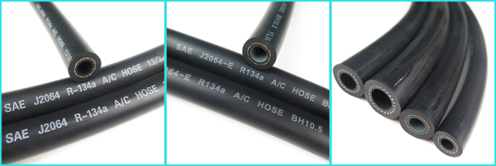 ① Manguera de aire acondicionado SAE J2064 TIPO B/C/E: Contiene adhesivos de alto rendimiento como CIIR/CSM/EPDM y una fórmula de película patentada. Cumple con las normas internacionales y ha superado pruebas de terceros, ofreciendo una excelente resistencia a la presión y a la temperatura, así como flexibilidad, lo que la hace apta para diversos modelos de vehículos y entornos exigentes.